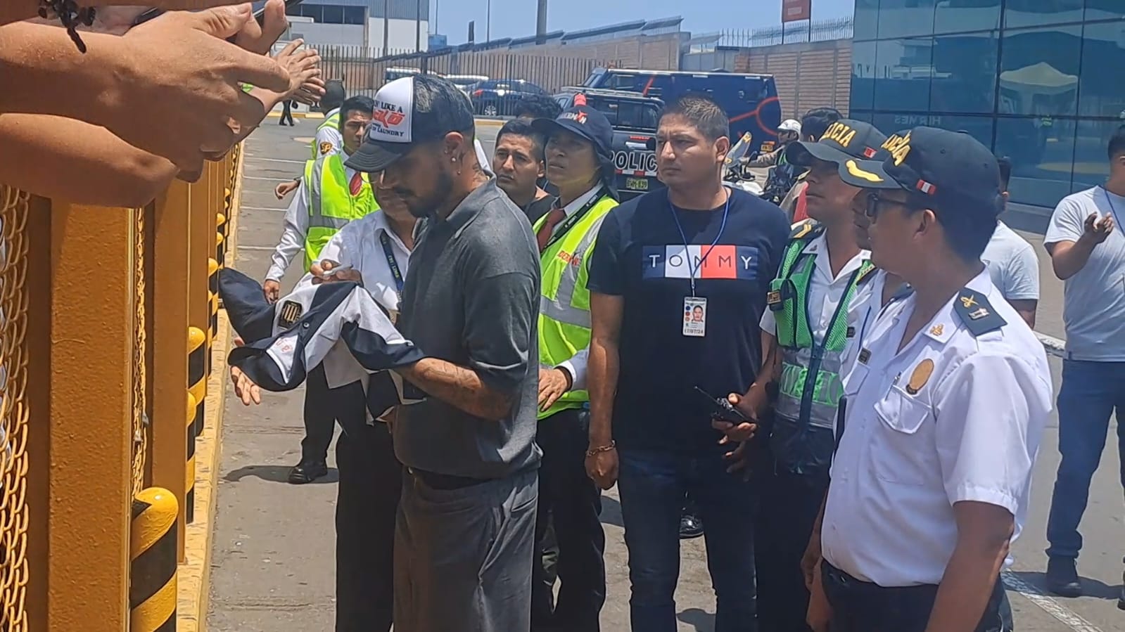 • El vuelo de Paolo Guerrero aterrizó en Lima a las 12:33 para la reunión que tiene con el club UCV a la espera de su abogado Julio García y una multitud de gente , que dificultaron la salida del depredador que estaba junto a su familia. Tras la salida del “9”, tuvo que volver a ingresar para salir por otra puerta ya que las personas no permitieron la salida del jugador. Sin embargo, cuando logró salir con tranquilidad se tomó el tiempo de firmar la camiseta de Alianza Lima.